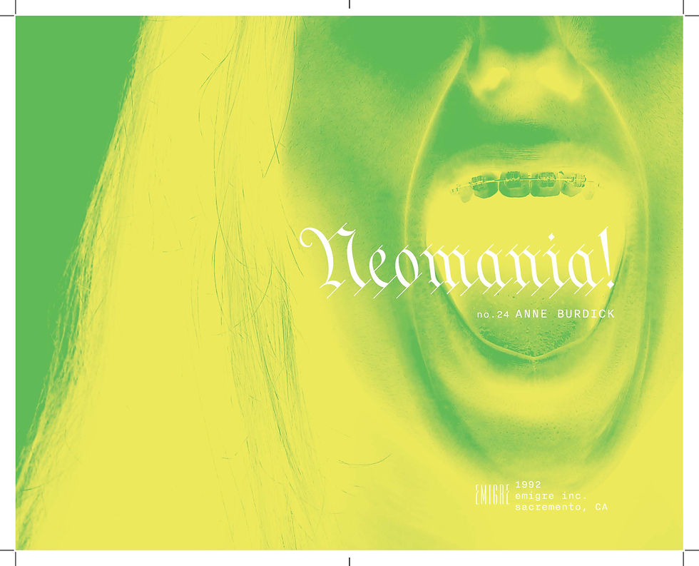 This project reimagines the essay Neomania by Anne Burdick, originally published in Emigre #24, as a mini booklet. I designed the cover, endpages, title page, and body copy layout. The concept behind my design explores the tension between the old and the new, reflecting the article's themes of fleeting trends and the constant pressure on designers to innovate. The cover combines blackletter type and ornate decorations—symbols of tradition—with the modern, clean Degular text to create a dynamic contrast. The title page illustrates a screaming mouth to evoke the anxiety and intensity Burdick describes when designers are forced to constantly reinvent themselves. The use of pink and green throughout the design represents clashing, sickly colors, emphasizing discomfort and the chaotic nature of trends. Overall, I aimed for the book to feel weird—intentionally unconventional—capturing the essence of Neomania and its critique of design culture’s obsession with the "new."